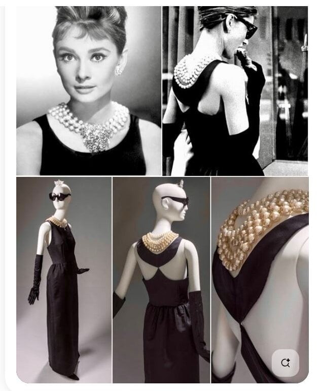 Módnou ikonou sa stali aj čierne večerné šaty, ktoré mala Audrey Hepburn na sebe. Boli bez rukávov, s okrúhlym výstrihom a tesne obopínali štíhlu postavu hollywoodskej hviezdy. Dopĺňali ich perlový náhrdelník, rukavičky nad lakte, malá čierna kabelka a slnečné okuliare.