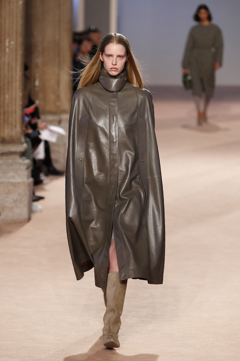 Značka Salvatore Ferragamo na Týždni módy v Miláne 2020 a jej verzia plášťa.